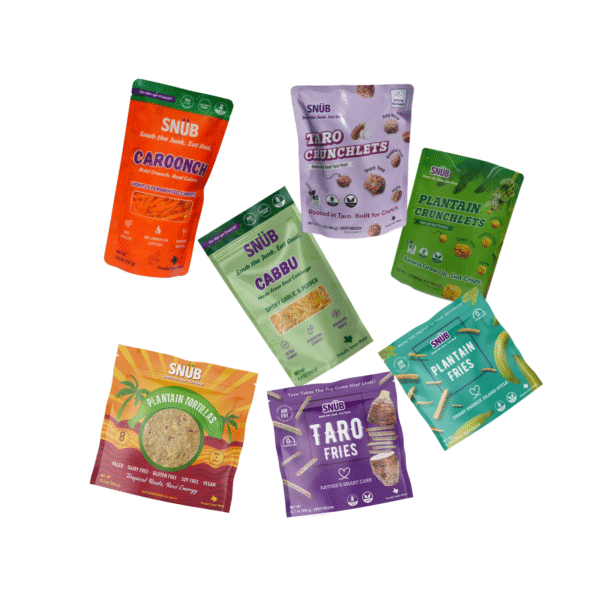 Hearty taro root fries with clean, bold crunch. Gluten-free, vegan, no junk.